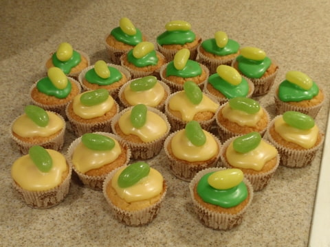 - 24 paaseitjes (groen en gele jellybeans van AH)