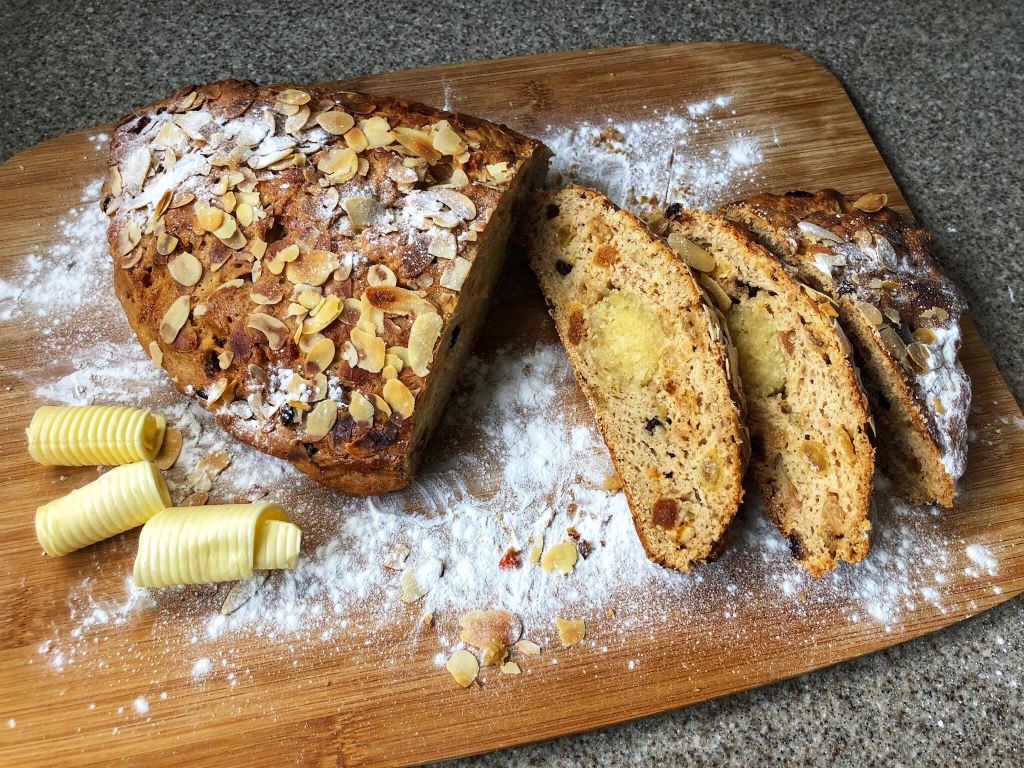 Laat de stol ca. 60 minuten bakken tot deze mooi bruin is, evt. na 45 minuten afdekken met aluminiumfolie als hij te donker wordt.