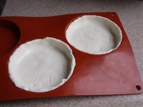 Leg het deeg in een vormpje, duw het deeg bij de randen netjes in de vorm en prik de bodem in met een vork.