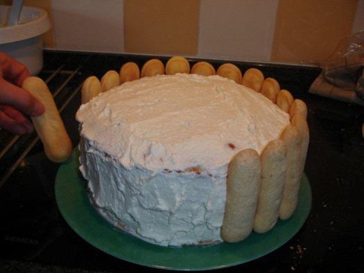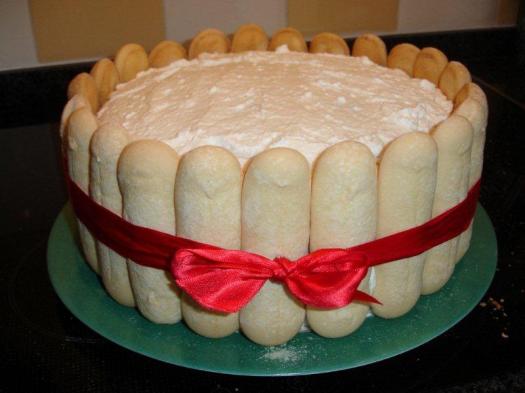 Druk de lange vingers tegen de zijkant van de taart en strik het lint erom